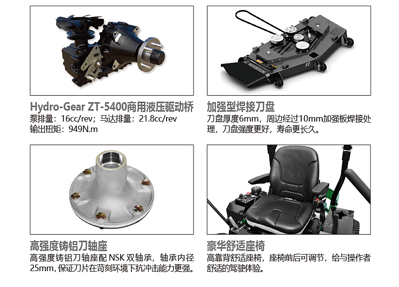 52 寸 零轉(zhuǎn)彎草坪車 是一款商用型草坪車,適用于大面積草坪的養(yǎng)護(hù)作業(yè)。