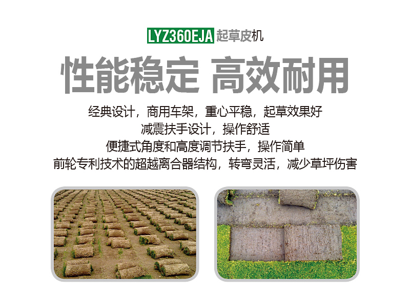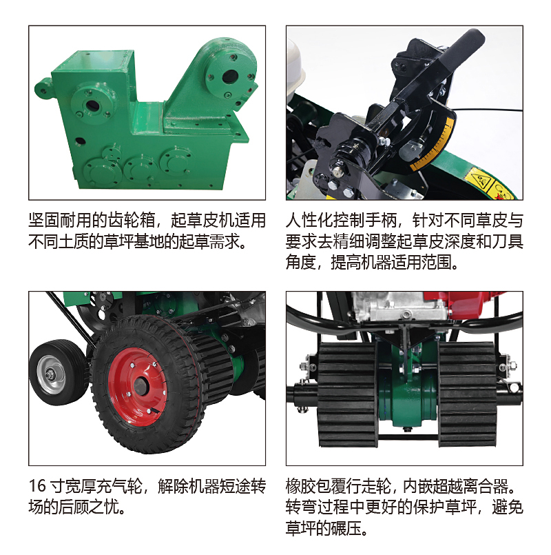 美神起草皮機(jī)根據(jù)人體工程學(xué)原理,改進(jìn)了操作方式,扶手增加減震,后輪為萬向輪并配有超越離合器,轉(zhuǎn)彎方便且不損壞草坪,增加了操作者舒適度。本產(chǎn)品可根據(jù)不同草種和不同狀態(tài)草皮隨意調(diào)整起草的深度、角度,效率高。
